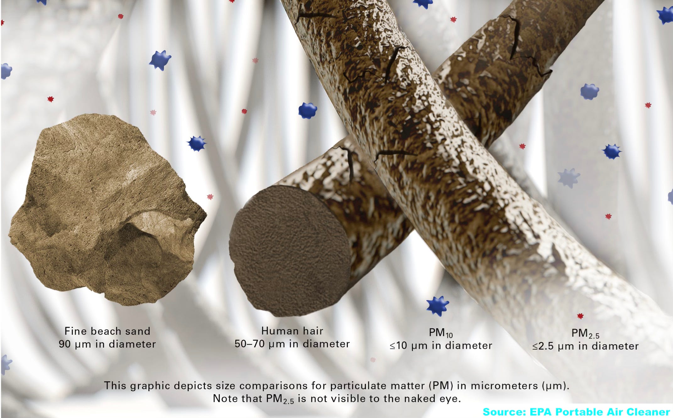 Now- please read my article on mycotoxins - they are molecules, and they are larger than 1/1000 micron! BUT they are ALWAYS attached to the cell wall of the "large" spore, or the cell wall (or inside) the filament cell wall. So they too will always be captured at greater than 99.97%.